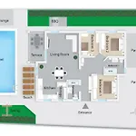 Letiště je vzdáleno 15 minut jízdy. Zahrnuje venkovní plavecký bazén, dále akvapark a rovnou střechu k opalování na místě.